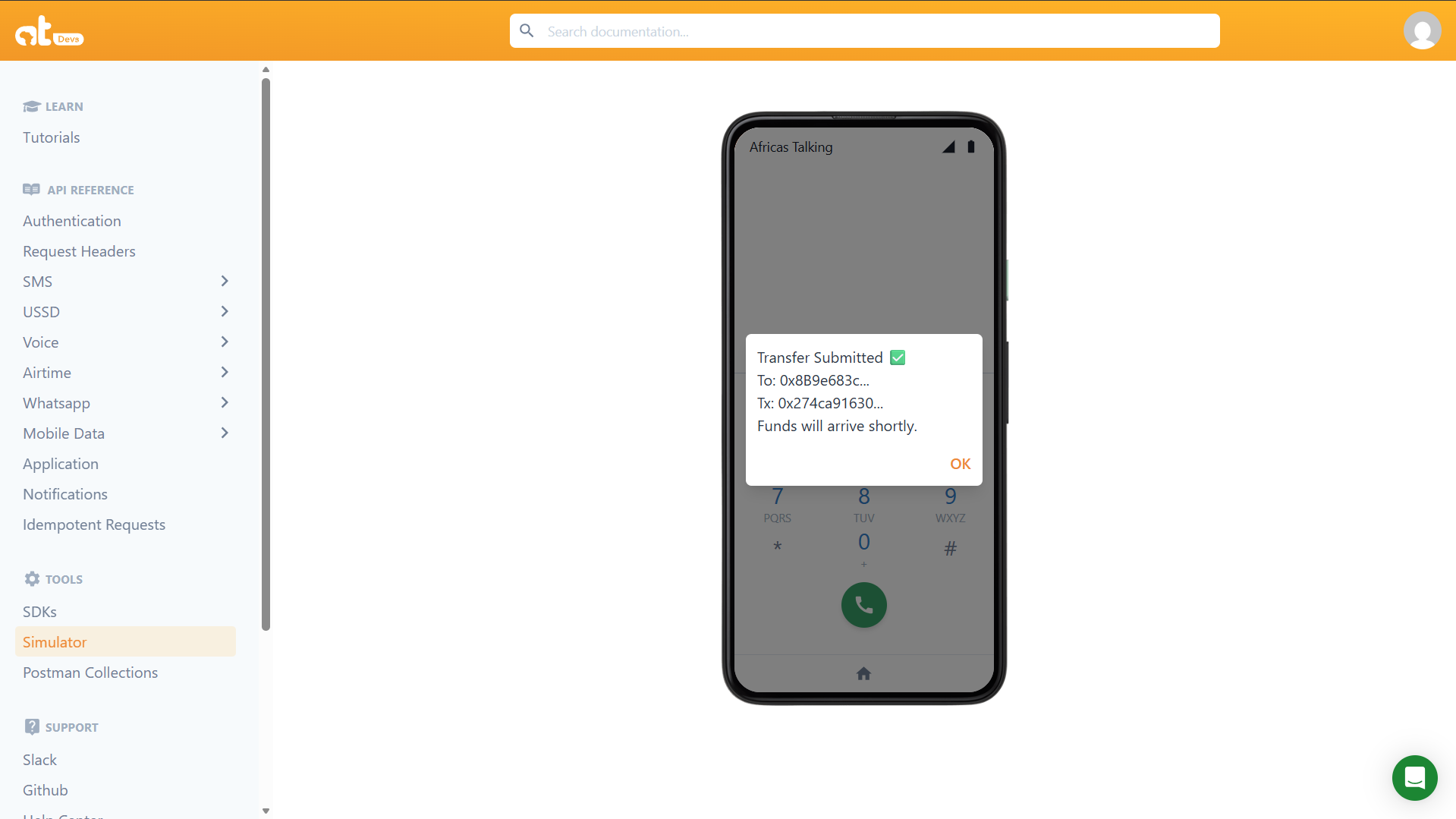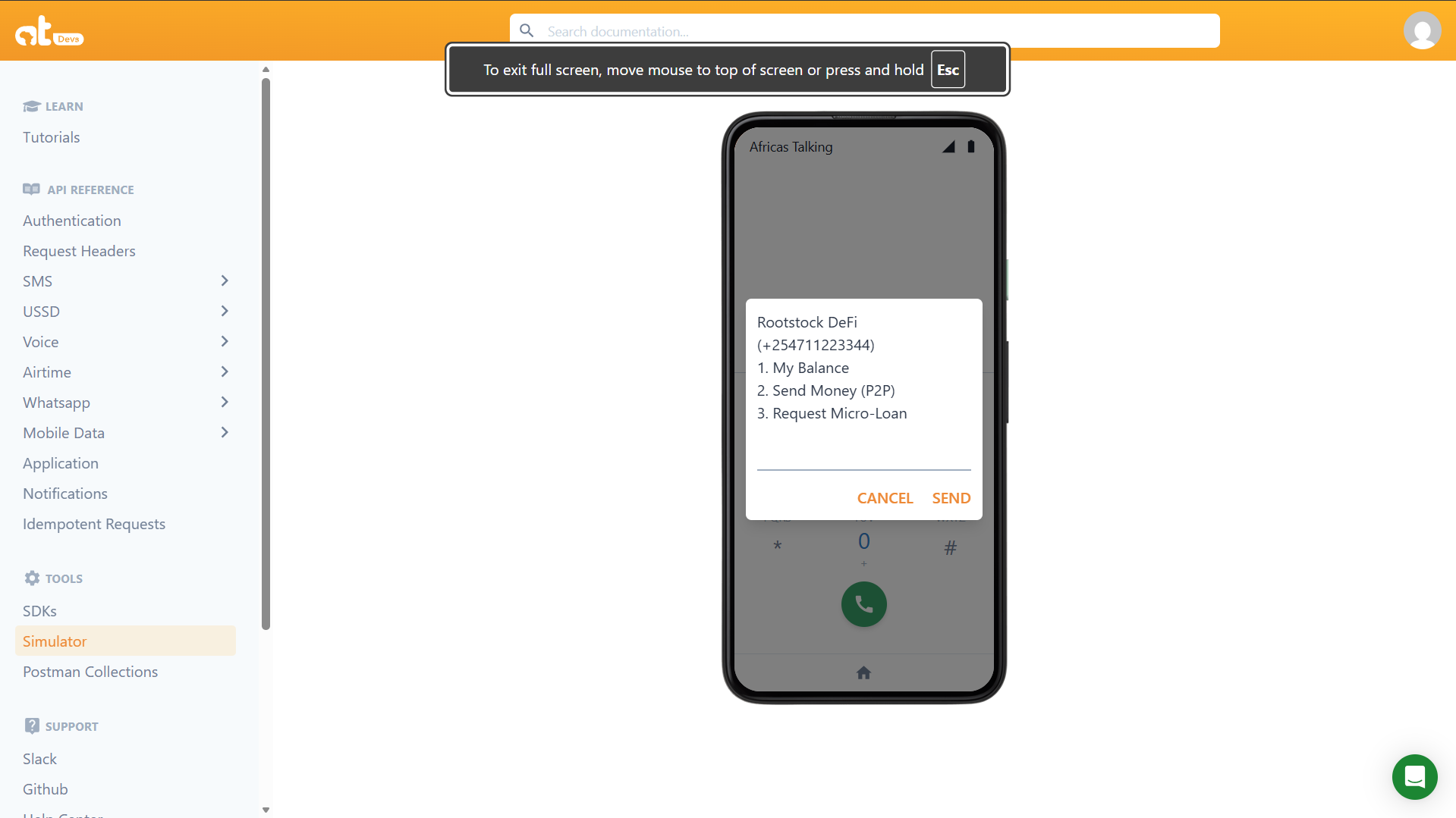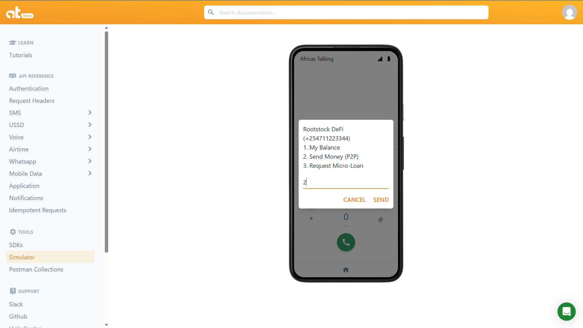 2. Navigate to USSD → Simulator